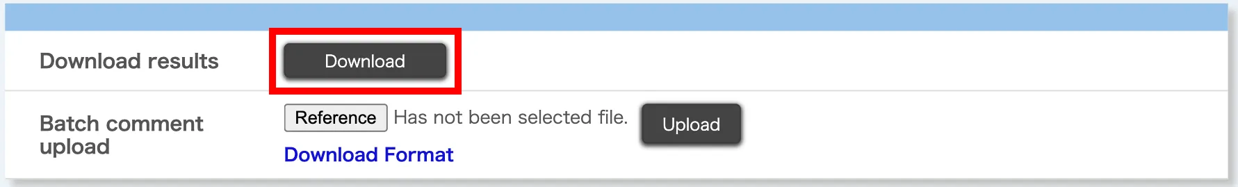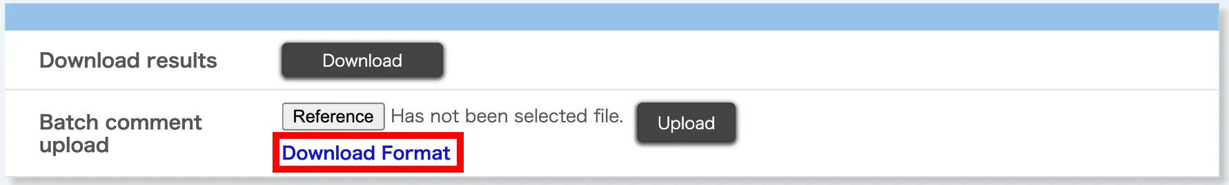In the “Batch comment upload” section, click “Download Format”.