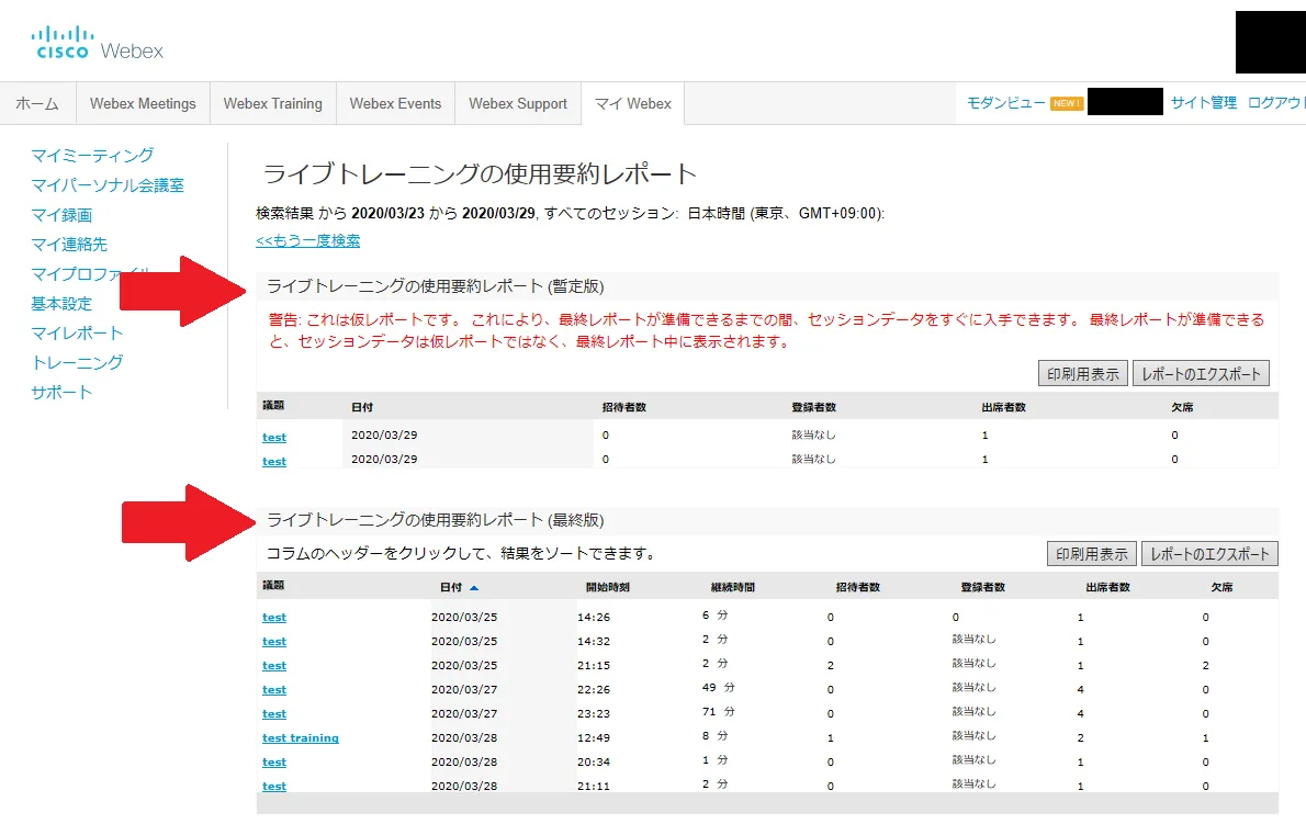- A list of trainings will be displayed. If the report is shown in the “Live training usage summary report (provisional version)” section, the proper report has not yet been generated. Please wait for it to move to the “Live Training Usage Summary Report (final version)” section. Then click on the agenda.