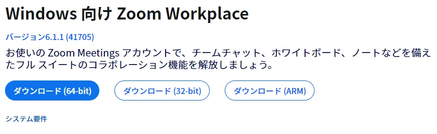 2. 「Zoom Workplace」の「ダウンロード」ボタンを押してください.Zoom Workplaceのインストーラーがダウンロードされます.(※「Zoom Workplace」とは,Zoomを利用するためのアプリの名称です.)