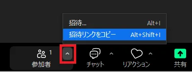 1. ミーティングが開始されたら,ミーティング画面の「参加者」の横の「^」を押して,「招待リンクをコピー」するか,ミーティング画面上部の緑色の盾マークから「リンクをコピー」して,参加者に通知してください.